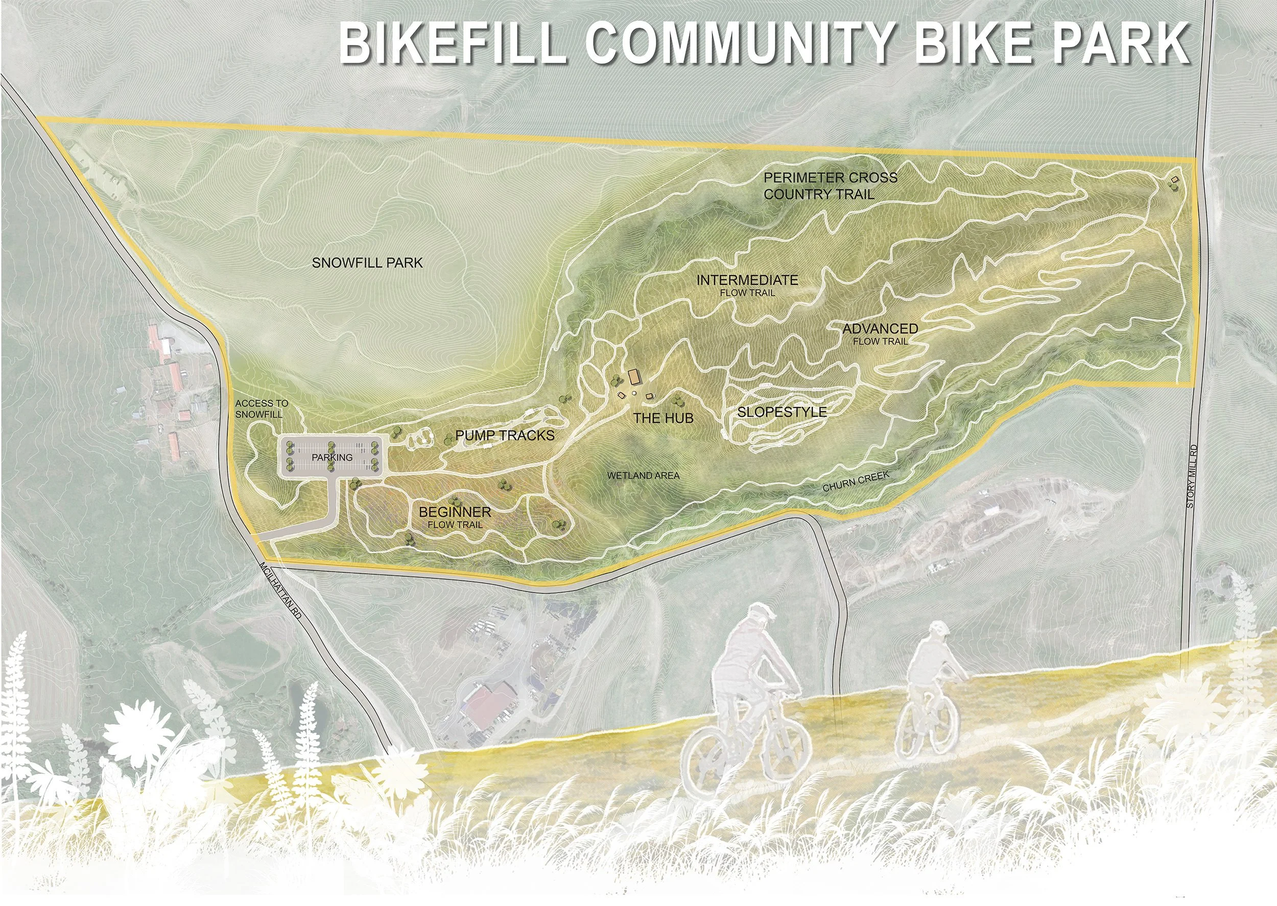 Bikefill will be strategically located adjacent to Snowfill Recreation Area on land provided by the City of Bozeman. The Snowfill/Bikefill community park complex will provide our community with more than 100 acres of purpose-built trails and parkland that add significant recreational amenities to our community.